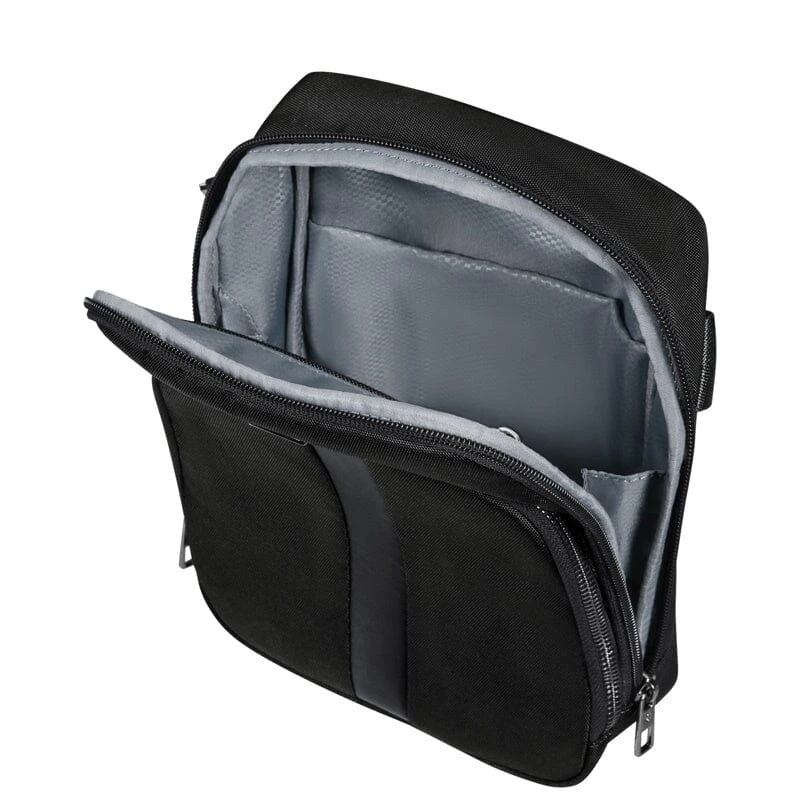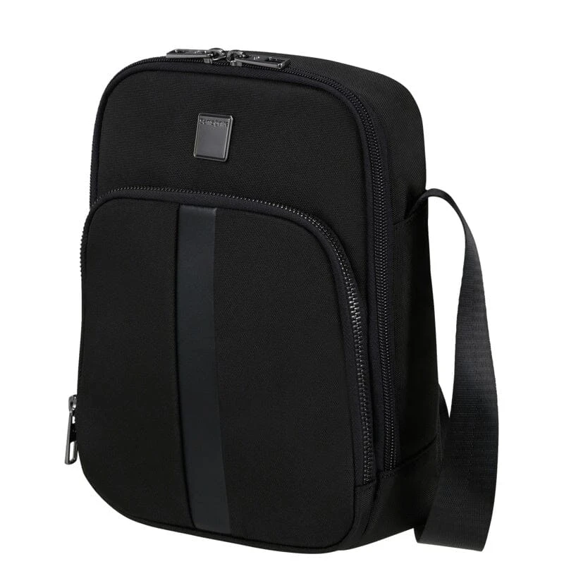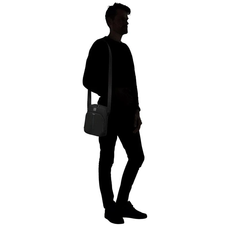 De Crossovertas M uit de Sacksquare collectie van Samsonite is gemaakt van lichtgewicht en gerecycled polyester. Deze handige schoudertas, die geschikt is om een tablet van maximaal 9,7″ in mee te nemen, sluit met een bovenrits, heeft een ritsvak aan de voorzijde. In het hoofdvak zitten naast het tablet vak ook nog een ritsvak. Deze compacte herentas heeft een lange en verstelbare schouderband om de tas crossover of op een schouder te kunnen dragen.