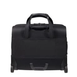 De rolling tote 17.3″ is geschikt als handbagage in het vliegtuig en heeft een ruime indeling met 2 hoofdcompartimenten waarvan een geschikt voor een kleding set (korte trip) en de ander geschikt voor A4 documenten met gevoerd 17.3″ laptop (42.2×28.7 cm) en tablet vak (26.6×18.3 cm). Middel rits te vergroten met 5 liter. Zeer praktisch in gebruik met dubbele, verstelbare trekstang en 2 soepele wielen. Met dubbele handgrepen gemakkelijk op te tillen en voorzien van smart sleeve om de rolling tote op een trolley te bevestigen.