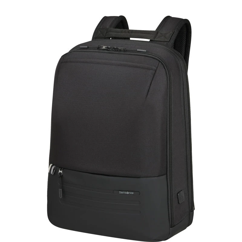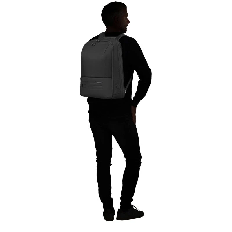 Laptop rugtas uit de Stackd Biz serie van Samsonite. De Stackd Biz kenmerkt zich door een unisex design gecombineerd met een urban look, StackD Biz is de ideale match voor alle professionals. De rugzak past perfect bij onze geliefde koffer collectie en is gemaakt met gerecycleerde materialen, terwijl de PU details aan de onderkant zorgen voor extra stevigheid. Vlot onderweg met de vele vakken, de USB-poort en de extra Smart Sleeve.
