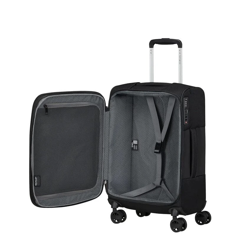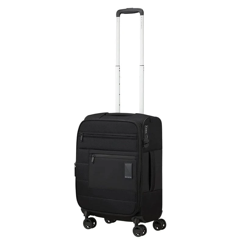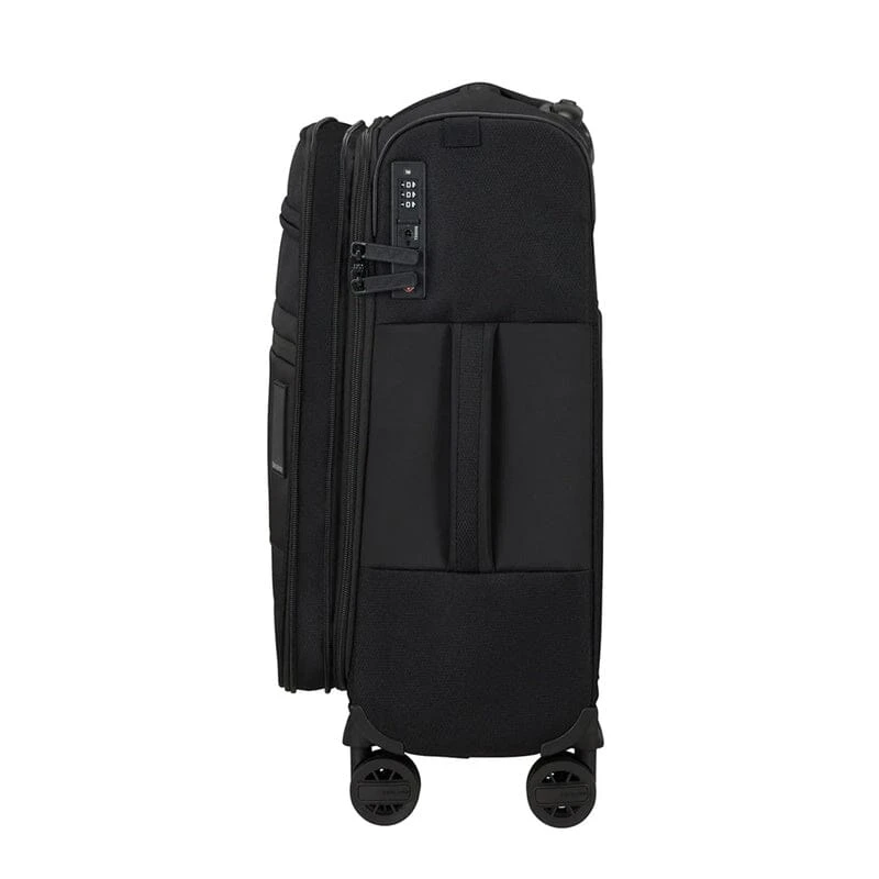 De Vaccay Spinner 55/35 EXP van Samsonite is een handbagage trolley die bijna met alle vliegmaatschappijen mee mag als cabin lugage. Deze lichtgewicht handbagage koffer is voorzien van een voorvak, gemakkelijk voor de essentiels die je dicht bij de hand wilt hebben. De inhoud van de koffer is met 5 liter te vergroten dmv de expandable rits. Daarnaast beschikt de trolley over gekruiste inpakriemen zodat je bagage niet gaat schuiven tijdens de reis. Het handvat, de vier soepel roterende wielen en de verstelbare trekstang zorgen ervoor dat de koffer comfortabel vervoerd kan worden.Â
