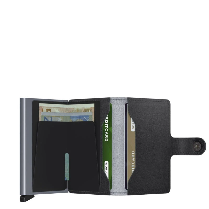De Secrid lederen Wallet collectie is het resultaat van Nederlands vakmanschap en verfijnd handwerk op het hoogste niveau. Er is gebruik gemaakt van premium leder van europese huiden en verwerkt in verschilende collecties: Original, Vintage, Amazon, Nile, Matte, Dutch Martin, Recycled, Crisple en Rango. De Secrid Miniwallet heeft als basis de Secrid Cardprotector en is hierdoor een compacte en veilige portemonnee. Dankzij het unieke, Red Dot Design Award winnende, ontwerp schuiven de kaarten trapsgewijs naar buiten voor een eenvoudige selectie. Naast de 6 kaarten in de Cardprotector biedt de Miniwallet ruimte voor enkele kaarten, papiergeld, bonnetjes, visitekaartjes en enkele munten. Uw belangrijkste passen zijn optimaal beschermt, zowel tegen buigen en breken als tegen ongewenst uitlezen van RFID-kaarten (zoals de OV-chipkaart, ID-kaart, de nieuwste creditcards en bedrijfspasjes). De Miniwallet is compact en vanwege de druksluiting gemakkelijk in elke tas mee te nemen. Ook leuk als cadeau, want deze Secrid Miniwallet wordt geleverd in een mooie verpakking.Â