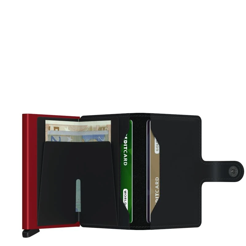 De Secrid lederen Wallet collectie is het resultaat van Nederlands vakmanschap en verfijnd handwerk op het hoogste niveau. Er is gebruik gemaakt van premium leder van europese huiden en verwerkt in verschilende collecties: Original, Vintage, Amazon, Nile, Matte, Dutch Martin, Recycled, Crisple en Rango. De Secrid Miniwallet heeft als basis de Secrid Cardprotector en is hierdoor een compacte en veilige portemonnee. Dankzij het unieke, Red Dot Design Award winnende, ontwerp schuiven de kaarten trapsgewijs naar buiten voor een eenvoudige selectie. Naast de 6 kaarten in de Cardprotector biedt de Miniwallet ruimte voor enkele kaarten, papiergeld, bonnetjes, visitekaartjes en enkele munten. Uw belangrijkste passen zijn optimaal beschermt, zowel tegen buigen en breken als tegen ongewenst uitlezen van RFID-kaarten (zoals de OV-chipkaart, ID-kaart, de nieuwste creditcards en bedrijfspasjes). De Miniwallet is compact en vanwege de druksluiting gemakkelijk in elke tas mee te nemen. Ook leuk als cadeau, want deze Secrid Miniwallet wordt geleverd in een mooie verpakking.Â