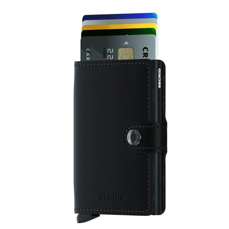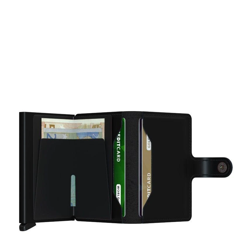 De Secrid lederen Wallet collectie is het resultaat van Nederlands vakmanschap en verfijnd handwerk op het hoogste niveau. Er is gebruik gemaakt van premium leder van europese huiden en verwerkt in verschilende collecties: Original, Vintage, Amazon, Nile, Matte, Dutch Martin, Recycled, Crisple en Rango. De Secrid Miniwallet heeft als basis de Secrid Cardprotector en is hierdoor een compacte en veilige portemonnee. Dankzij het unieke, Red Dot Design Award winnende, ontwerp schuiven de kaarten trapsgewijs naar buiten voor een eenvoudige selectie. Naast de 6 kaarten in de Cardprotector biedt de Miniwallet ruimte voor enkele kaarten, papiergeld, bonnetjes, visitekaartjes en enkele munten. Uw belangrijkste passen zijn optimaal beschermt, zowel tegen buigen en breken als tegen ongewenst uitlezen van RFID-kaarten (zoals de OV-chipkaart, ID-kaart, de nieuwste creditcards en bedrijfspasjes). De Miniwallet is compact en vanwege de druksluiting gemakkelijk in elke tas mee te nemen. Ook leuk als cadeau, want deze Secrid Miniwallet wordt geleverd in een mooie verpakking.Â
