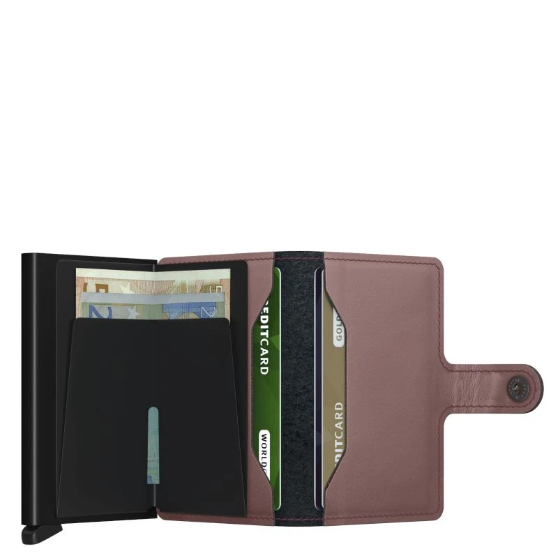 De Secrid lederen Wallet collectie is het resultaat van Nederlands vakmanschap en verfijnd handwerk op het hoogste niveau. Er is gebruik gemaakt van premium leder van europese huiden en verwerkt in verschilende collecties: Original, Vintage, Amazon, Nile, Matte, Dutch Martin, Recycled, Crisple en Rango. De Secrid Miniwallet heeft als basis de Secrid Cardprotector en is hierdoor een compacte en veilige portemonnee. Dankzij het unieke, Red Dot Design Award winnende, ontwerp schuiven de kaarten trapsgewijs naar buiten voor een eenvoudige selectie. Naast de 6 kaarten in de Cardprotector biedt de Miniwallet ruimte voor enkele kaarten, papiergeld, bonnetjes, visitekaartjes en enkele munten. Uw belangrijkste passen zijn optimaal beschermt, zowel tegen buigen en breken als tegen ongewenst uitlezen van RFID-kaarten (zoals de OV-chipkaart, ID-kaart, de nieuwste creditcards en bedrijfspasjes). De Miniwallet is compact en vanwege de druksluiting gemakkelijk in elke tas mee te nemen. Ook leuk als cadeau, want deze Secrid Miniwallet wordt geleverd in een mooie verpakking.Â
