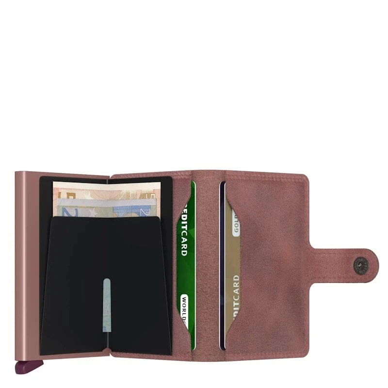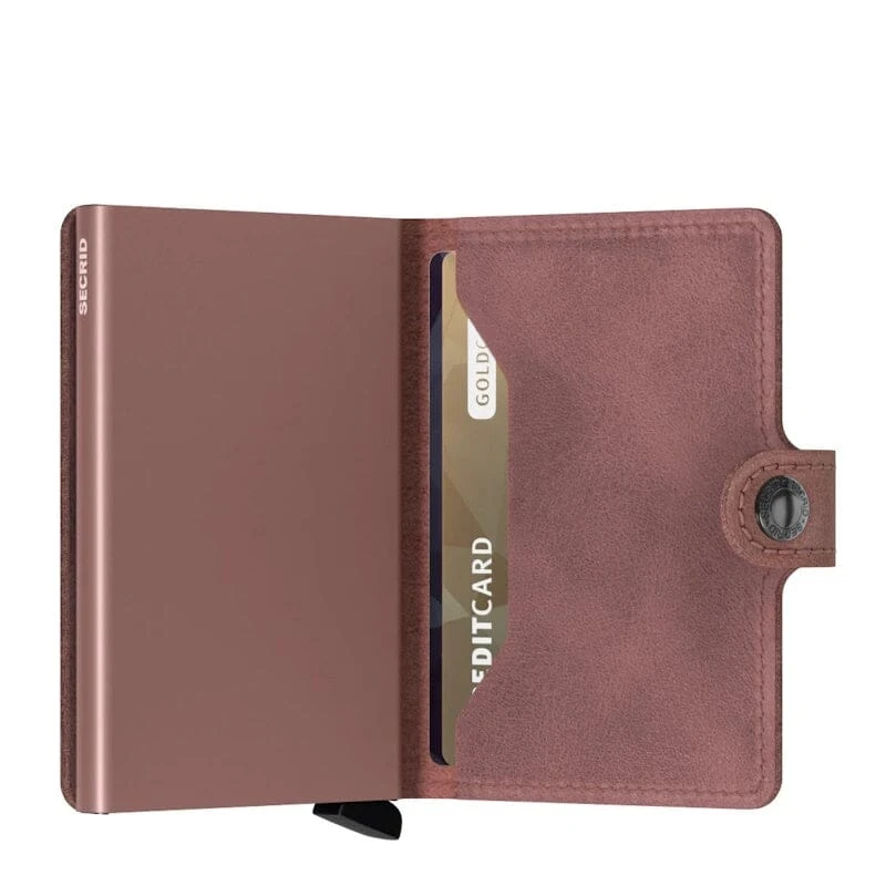 De Secrid lederen Wallet collectie is het resultaat van Nederlands vakmanschap en verfijnd handwerk op het hoogste niveau. Er is gebruik gemaakt van premium leder van europese huiden en verwerkt in verschilende collecties: Original, Vintage, Amazon, Nile, Matte, Dutch Martin, Recycled, Crisple en Rango. De Secrid Miniwallet heeft als basis de Secrid Cardprotector en is hierdoor een compacte en veilige portemonnee. Dankzij het unieke, Red Dot Design Award winnende, ontwerp schuiven de kaarten trapsgewijs naar buiten voor een eenvoudige selectie. Naast de 6 kaarten in de Cardprotector biedt de Miniwallet ruimte voor enkele kaarten, papiergeld, bonnetjes, visitekaartjes en enkele munten. Uw belangrijkste passen zijn optimaal beschermt, zowel tegen buigen en breken als tegen ongewenst uitlezen van RFID-kaarten (zoals de OV-chipkaart, ID-kaart, de nieuwste creditcards en bedrijfspasjes). De Miniwallet is compact en vanwege de druksluiting gemakkelijk in elke tas mee te nemen. Ook leuk als cadeau, want deze Secrid Miniwallet wordt geleverd in een mooie verpakking.Â