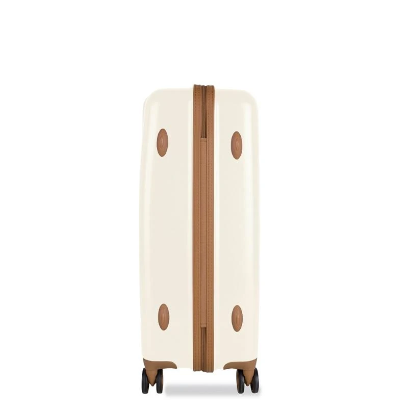 Deze nieuwe reiscollectie brengt je terug naar de jaren 70 met aardse tinten; Basil Green, Coral Cloud, Antique White en Seaport Blue die gecombineerd zijn met messing details en natuurlijke stoffen als, canvas en linnen.Â