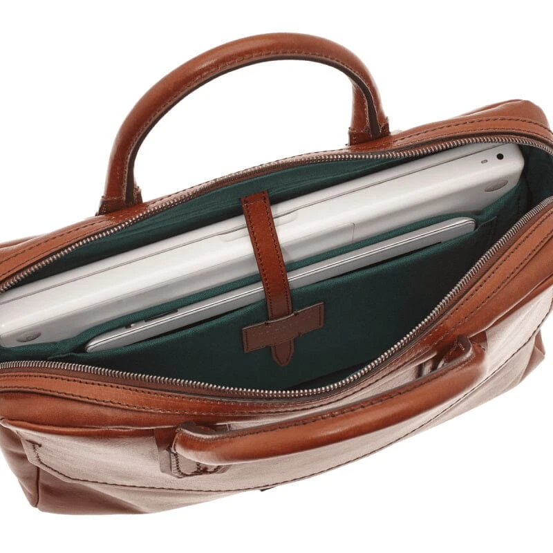 Deze businesstas van The Bridge is perfect om mee te nemen naar werk of naar school. Hij bevat een laptop- en tabletvak. Er zijn voldoende rits- en steekvakken voor bijvoorbeeld je mobiel en twee aparte steekvakken voor je pennen. Daarnaast is de tas voorzien van een ruim steekvak aan de voor- en achterzijde, Dankzij de twee hengsels is de tas gemakkelijk mee te nemen in de hand. Ook is het mogelijk om de tas crossover of op de schouder te dragen dankzij de meegeleverde schouderband die op lengte verstelbaar is. Aan de achterzijde bevindt zich een smartsleeve waarmee je de tas gemakkelijk over het trolleysysteem van een koffer kunt bevestigen.