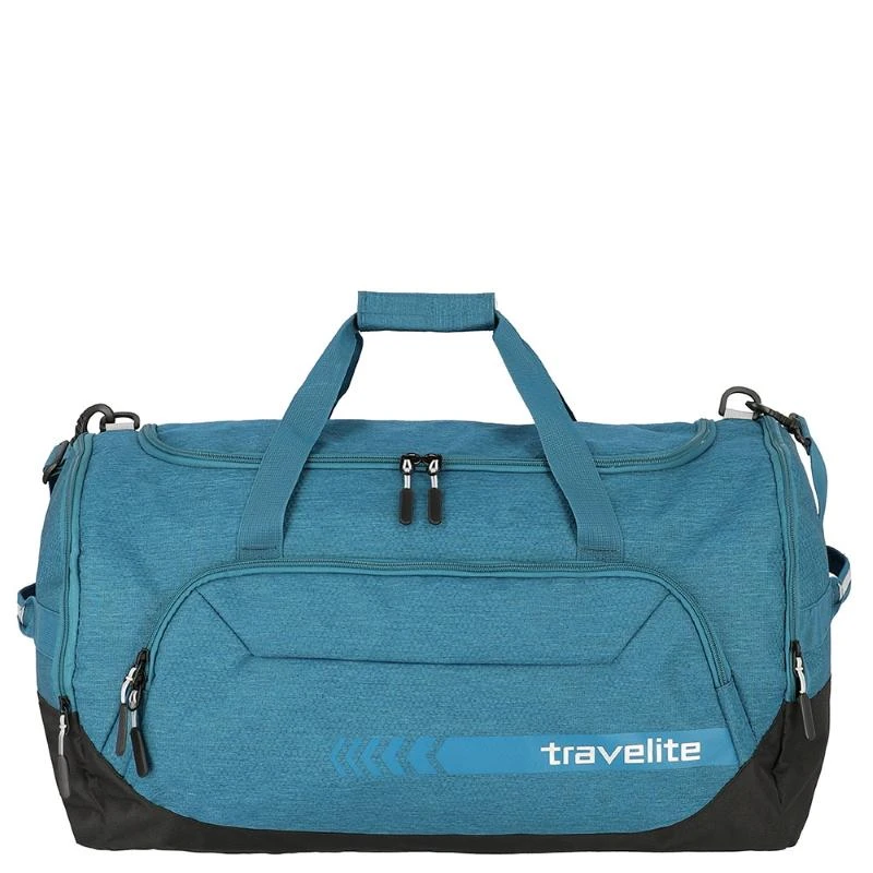 Reistas uit de Kick Off collectie van Travelite. Deze ruime lichtgewicht tas sluit als bovenlader wat betekend dat het hoofdvak kan worden afgesloten met een U-vormige ritssluiting waardoor je gemakkelijk de tas kunt in- en uitpakken. Aan de voorzijde bevindt zich een ruim ritsvak evenals aan de binnenzijde. De reistas heeft aan een zijkant een ritsvak en aan de andere zijkant een natvak met ritssluiting waar gebruikte en/of vuile textiel ingedaan kan worden. Middels de twee handgrepen aan de bovenzijde kan de reistas in de hand worden vervoerd. Aan beide zijkanten bevinden zich ook nog handgrepen. Met behulp van de afneembare en in lengte verstelbare schouderband kan de tas crossover of op de schouder gedragen worden. Thuis kan de tas worden platgemaakt en zo gemakkelijk worden opgeruimd.