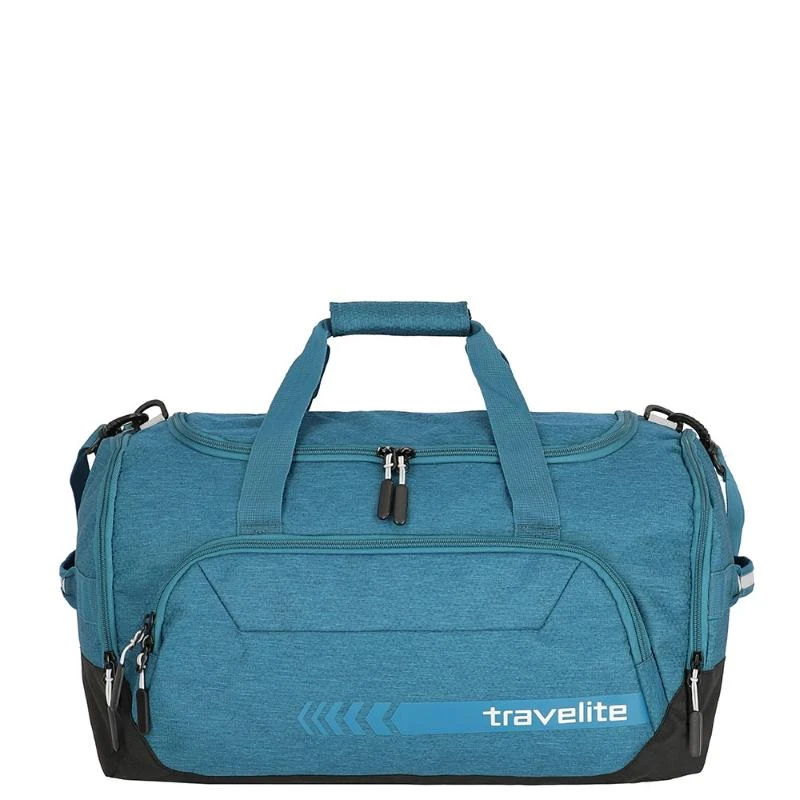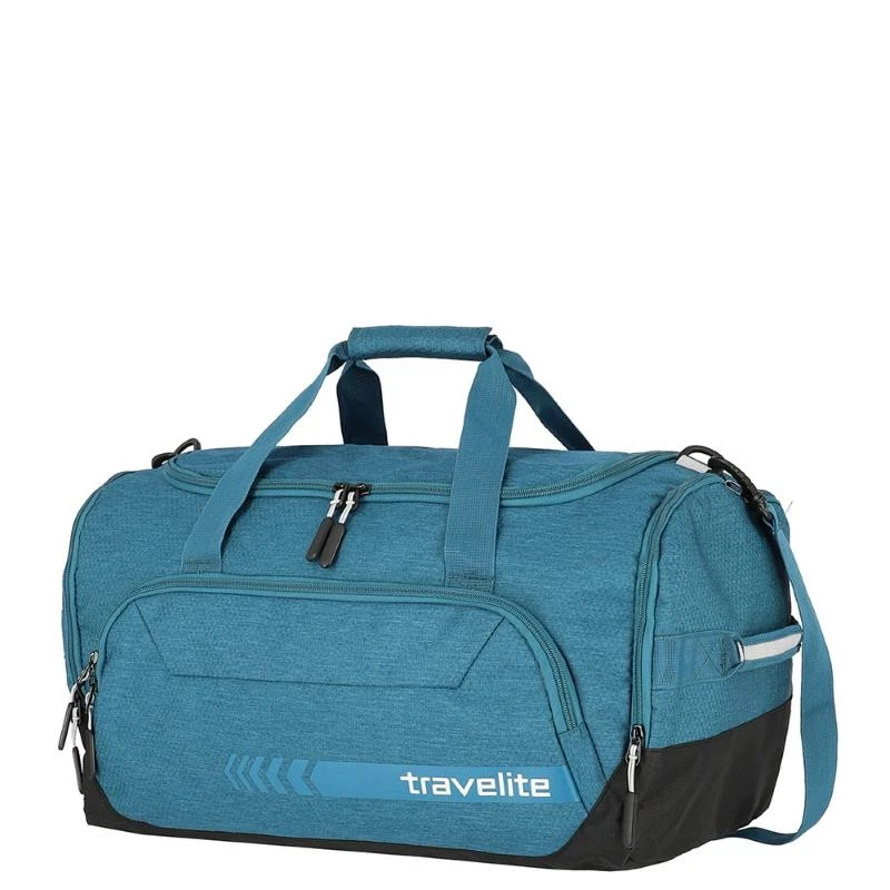 Reistas uit de Kick Off collectie van Travelite die ook als sporttas gebruikt kan worden. Deze ruime lichtgewicht tas sluit als bovenlader wat betekend dat het hoofdvak kan worden afgesloten met een U-vormige ritssluiting waardoor je gemakkelijk de tas kunt in- en uitpakken. Aan de voorzijde bevindt zich een ruim ritsvak evenals aan de binnenzijde. De sporttas heeft aan een zijkant een ritsvak en aan de andere zijkant een natvak met ritssluiting waar gebruikte en/of vuile textiel ingedaan kan worden. Middels de twee handgrepen aan de bovenzijde kan de reistas in de hand worden vervoerd. Aan beide zijkanten bevinden zich ook nog handgrepen. Met behulp van de afneembare en in lengte verstelbare schouderband kan de tas crossover of op de schouder gedragen worden. Thuis kan de tas worden platgemaakt en zo gemakkelijk worden opgeruimd.