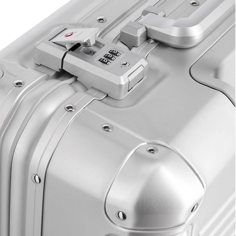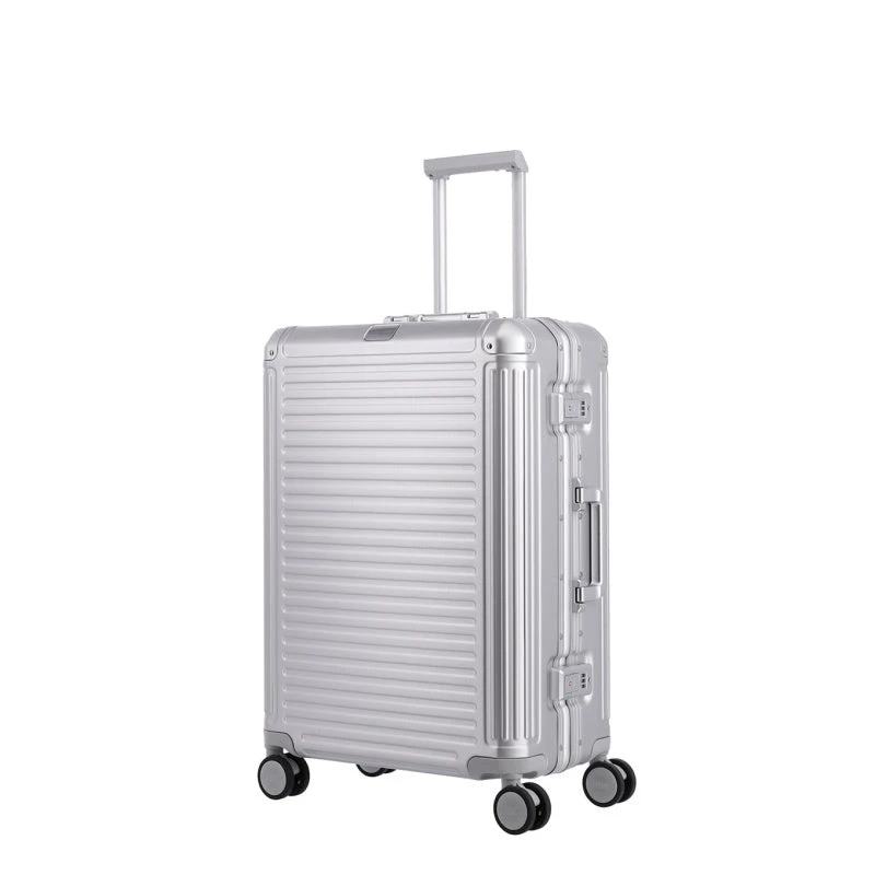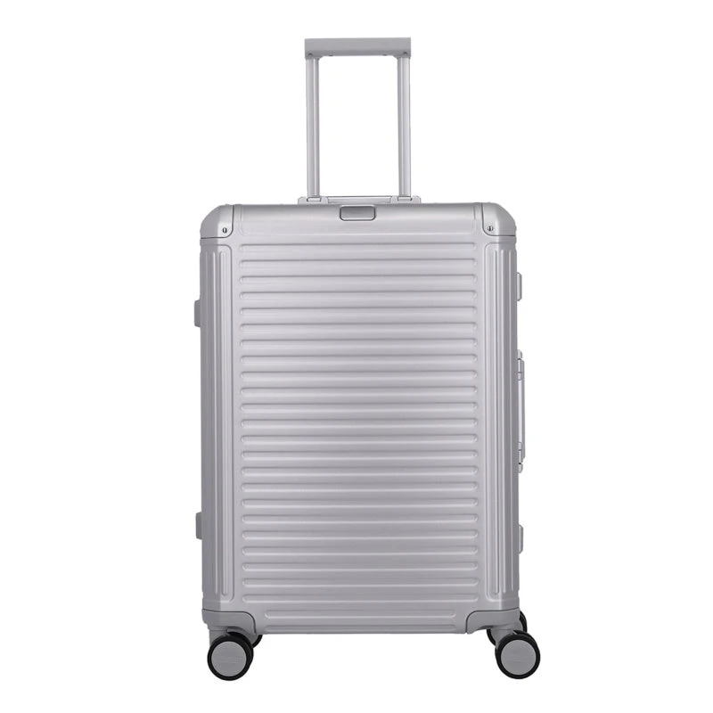 Middenmaat trolley uit de Next serie van Travelite. Deze trolley is gemaakt van aluminium en is af te sluiten met behulp van twee TSA-sloten. De TSA sloten zorgen ervoor dat uw trolley onbeschadigd geopend kan worden tijdens een mogelijke controle van de douane op het vliegveld. Aan de binnenzijde bevinden zich drie ritsvakken die het georganiseerd inpakken mogelijk maakt. De koffer is praktisch in gebruik met 4 soepele lopende wielen en een telescopische trekstang zodat de trolley comfortabel met je mee rijdt. Geschikt als handbagage in het vliegtuig. Mooi product gemaakt van lichtgewicht aluminium. Â